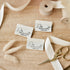 Die schönen Weblabel sind mittig gefalzt und haben zwei Motivseiten. Sie sind toll an Saumabschlüsse anzunähen oder zwischen 2 Stofflagen einzunähen.