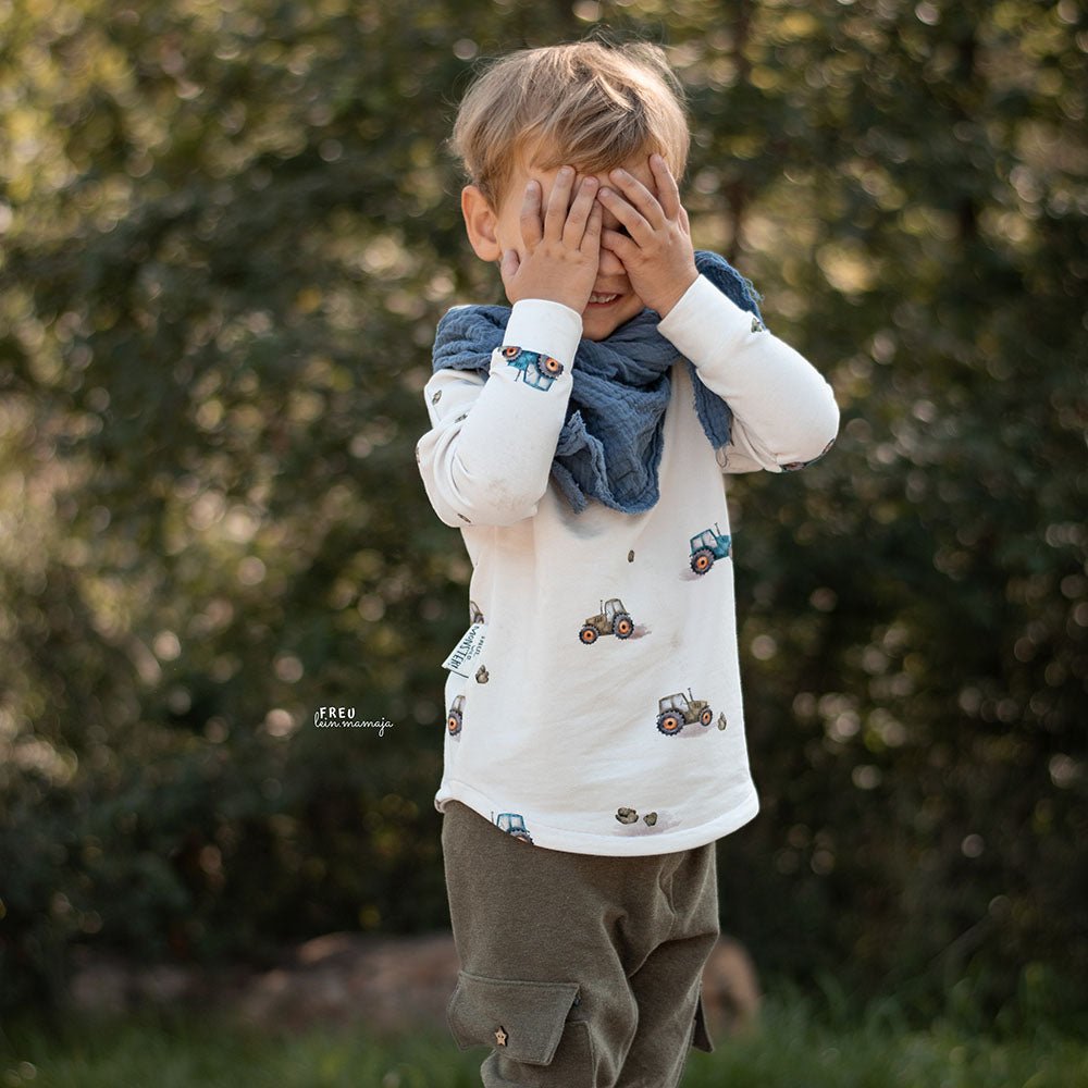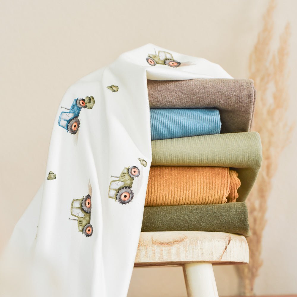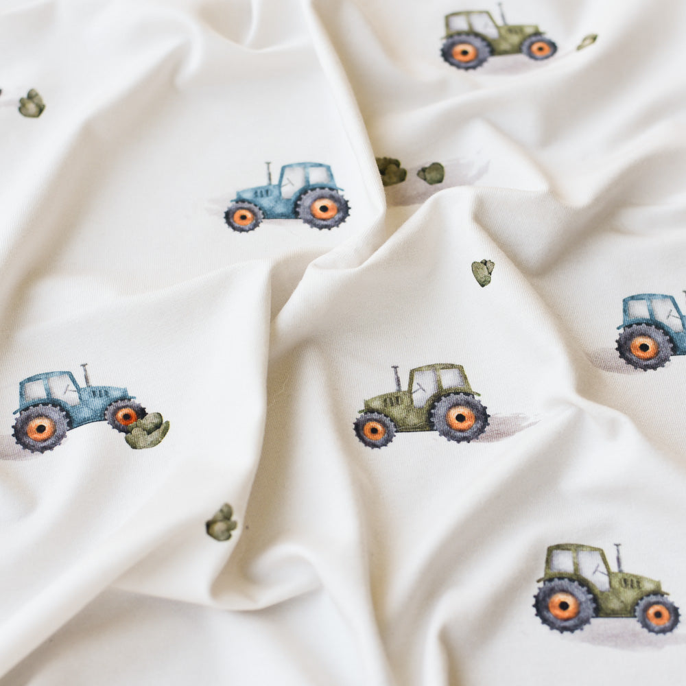 Erntezeit – der bunte Traktor auf außergewöhnlich weichem Jersey oder French Terry.