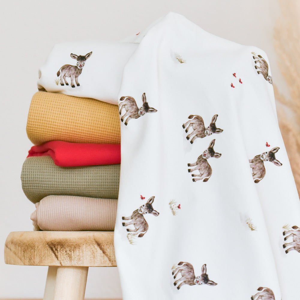 Fridoln – der putzige Esel auf außergewöhnlich weichem Jersey oder French Terry.