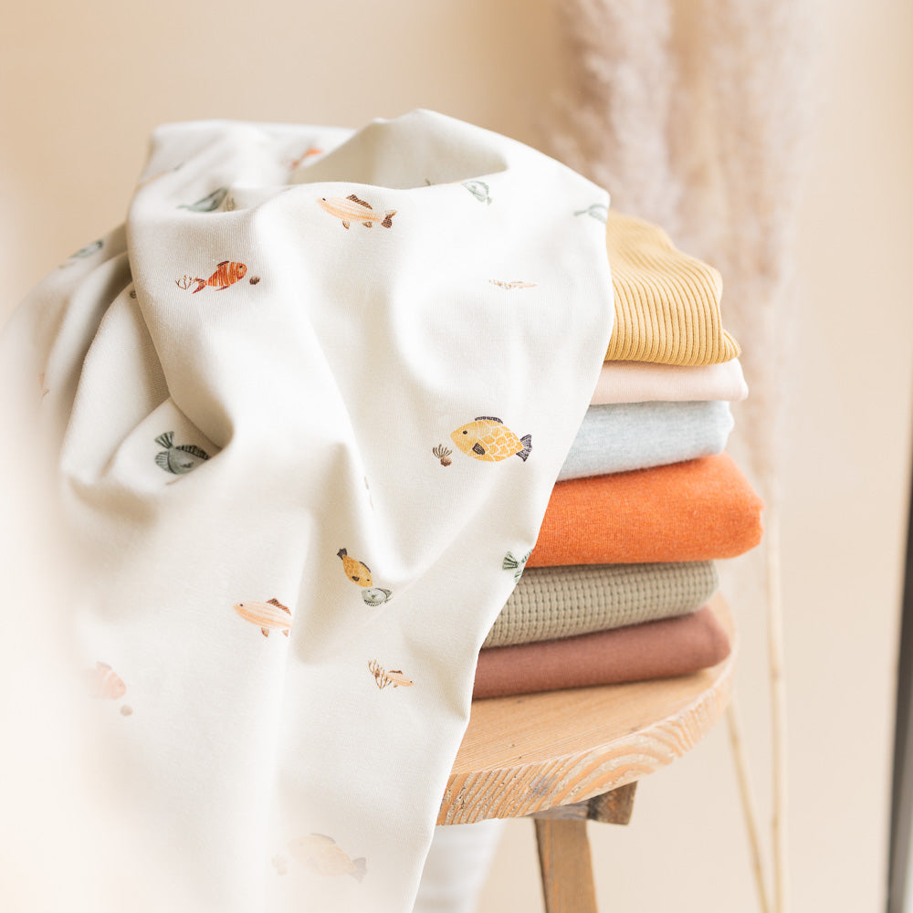 Ozeanschwärmerei – die Fische auf außergewöhnlich weichem Jersey oder French Terry.