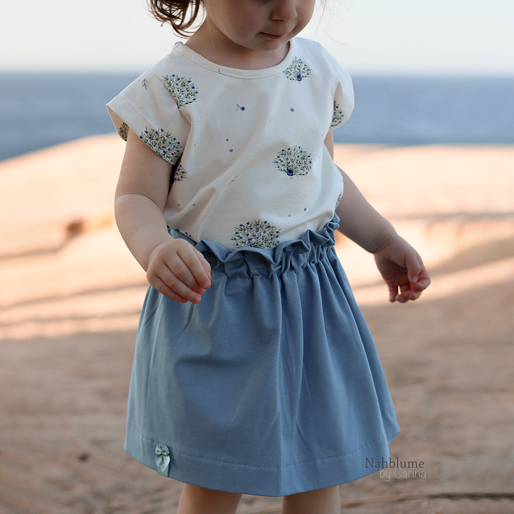 Unser Jersey ist luftig leicht und perfekt geeignet für T-Shirts, Bodys, Kleidchen oder Leggings. Aber auch für Beanies und Haarbänder sind ist der fließende bielastische Stoff geeignet.