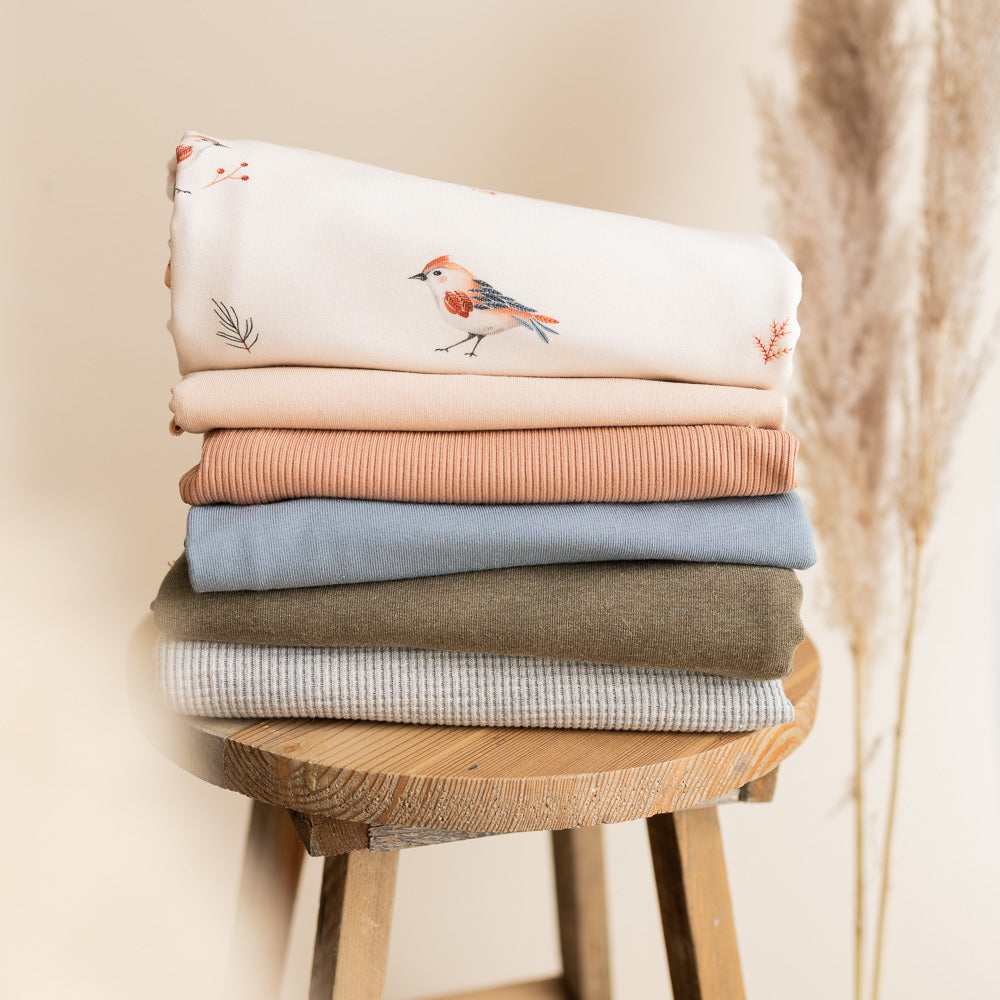 Wir haben hier die perfekte Lösung! Zu all unseren handgemalten, exklusiven Stoffen zeigen wir euch passende Kombis! Und das nicht nur als Bild! Mit der Funktion „Stoffstapel shoppen“ legst du easy peasy deine Traumkombi in den Warenkorb!