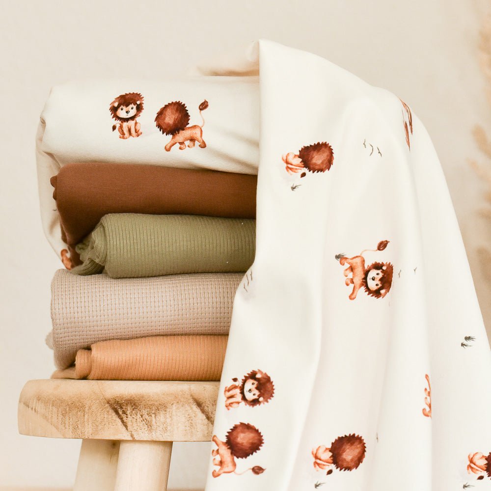 Theo – der niedliche Löwe auf außergewöhnlich weichem Jersey oder French Terry.