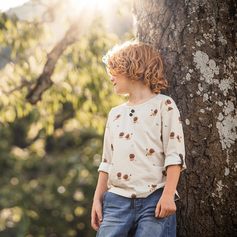 Außerdem sorgt der Stoff für ein unheimlich angenehmes Tragegefühl auf der Haut. Denn durch den Einsatz von Bio-Baumwolle und Biofarben, sowie das Reaktivdruckverfahren sind die Stoffe nicht nur schön anzusehen sondern auch noch Butterweich! Fühl dich unbedingt selbst mal rein!