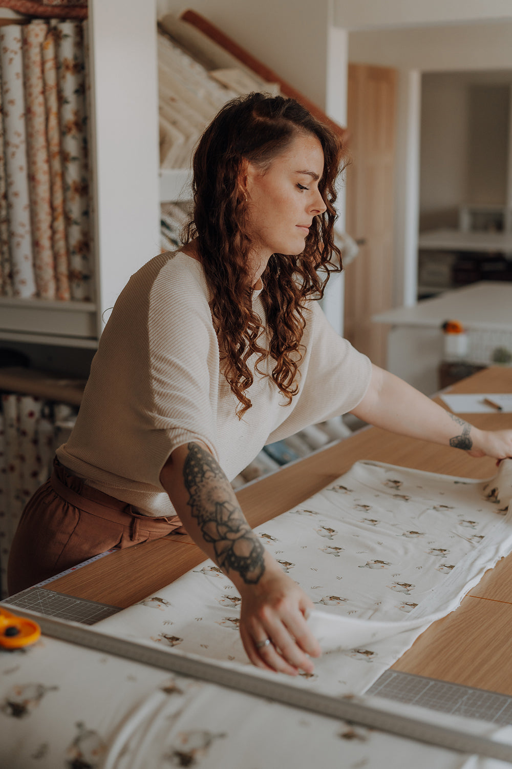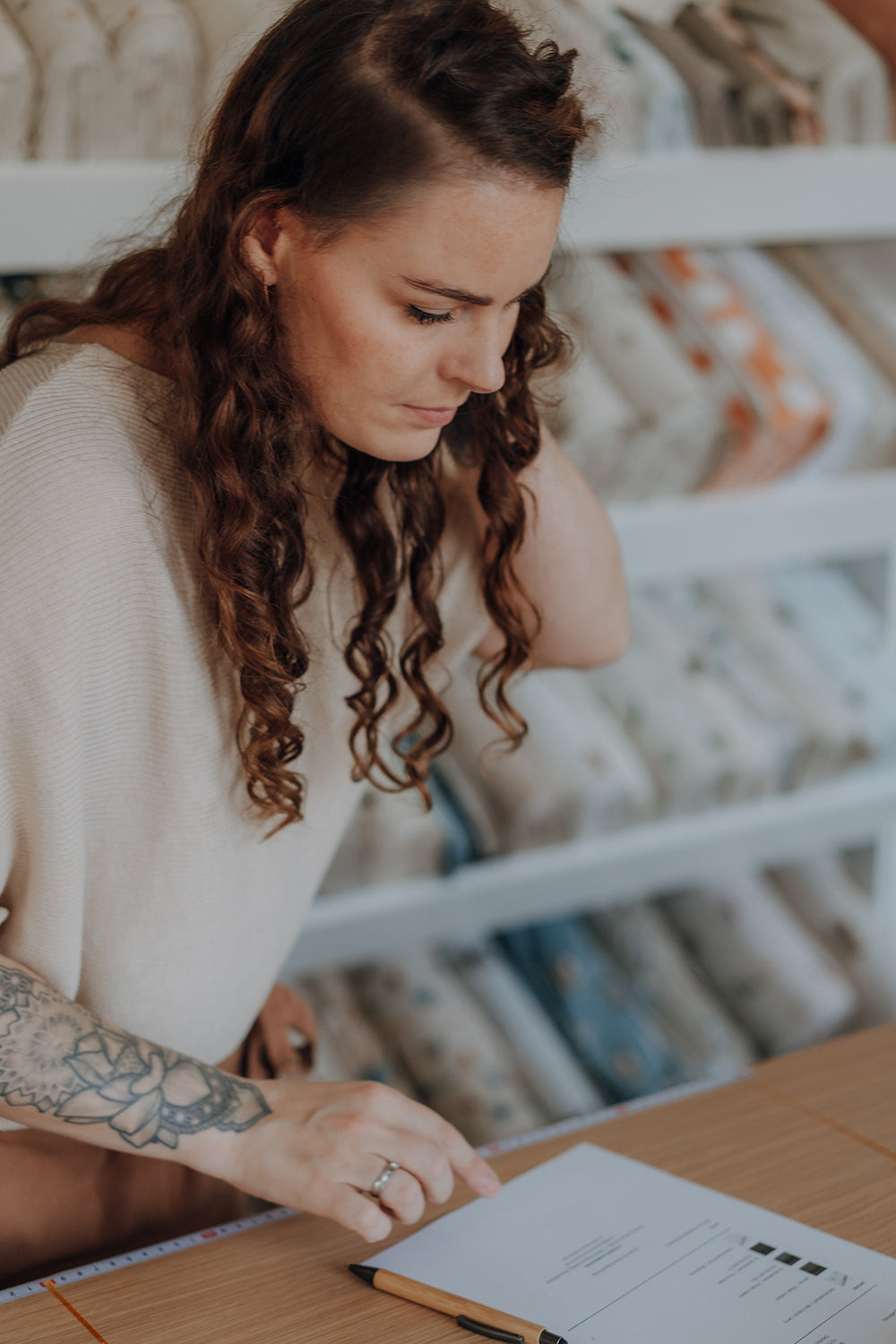 Du fragst dich, wer das Gesicht hinter dem Label ist? Das bin ich: Lena – Stoffdesignerin, Mama, Nähbegeisterte, Ehefrau und mit ganz viel Herz hinter allem was ihr hier seht!
