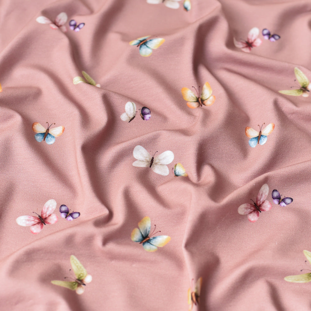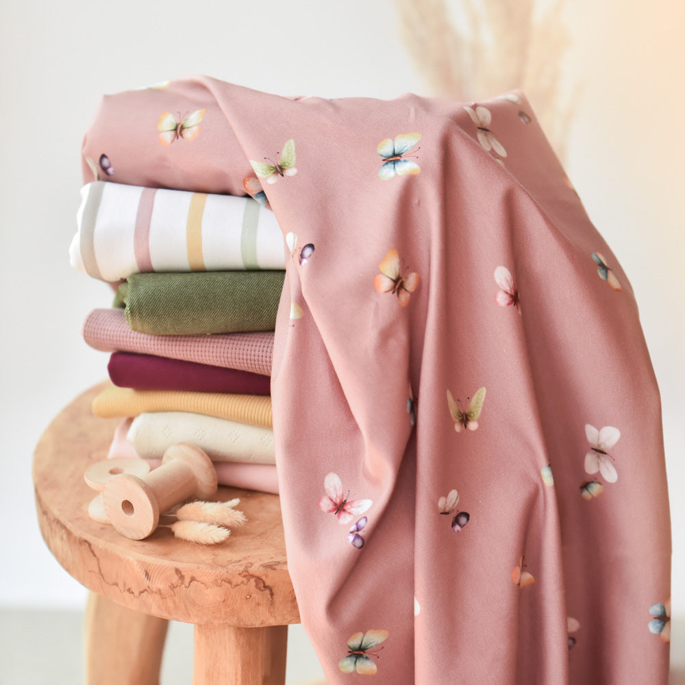 Flattertanz – die bunten und fröhlichen Schmetterlinge auf außergewöhnlich weichem Jersey oder French Terry.