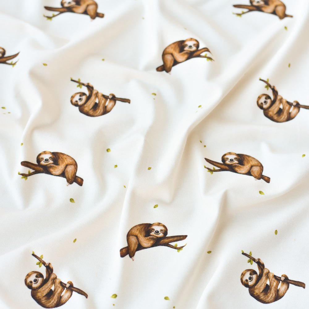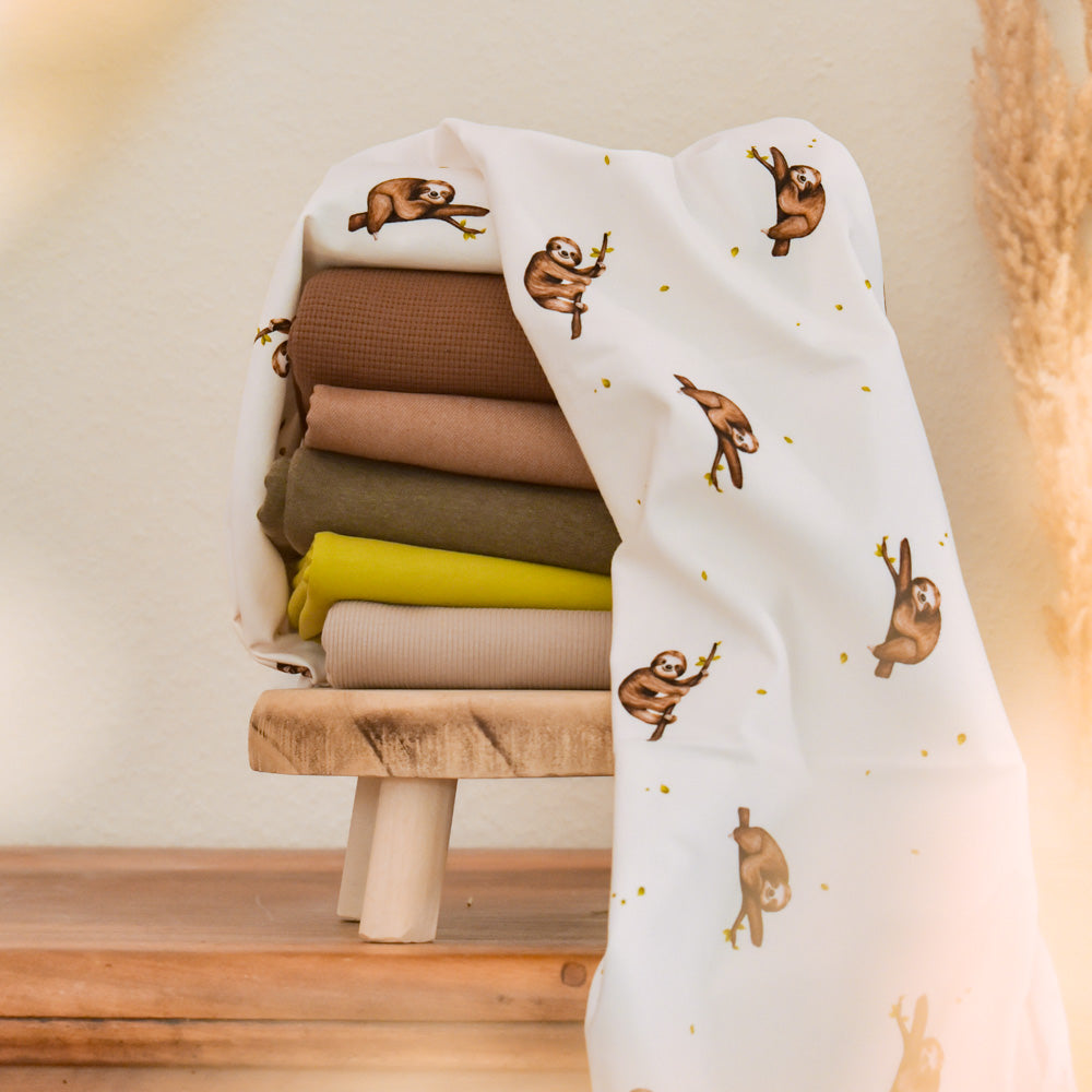 Frieda – das süße Faultier auf außergewöhnlich weichem Jersey oder French Terry.