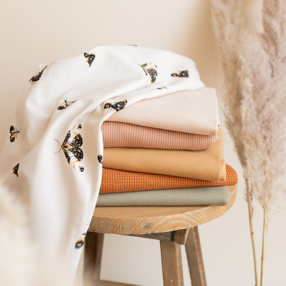 Wir haben hier die perfekte Lösung! Zu all unseren handgemalten, exklusiven Stoffen zeigen wir euch passende Kombis! Und das nicht nur als Bild! Mit der Funktion „Stoffstapel shoppen“ legst du easy peasy deine Traumkombi in den Warenkorb!